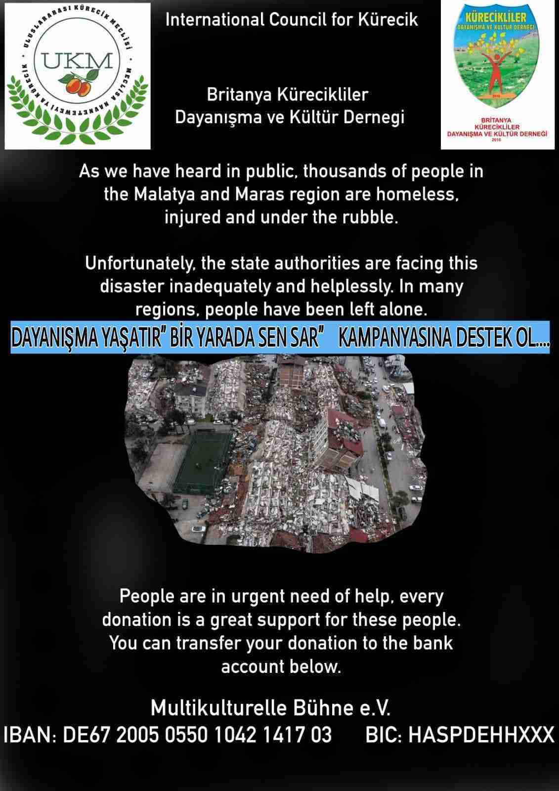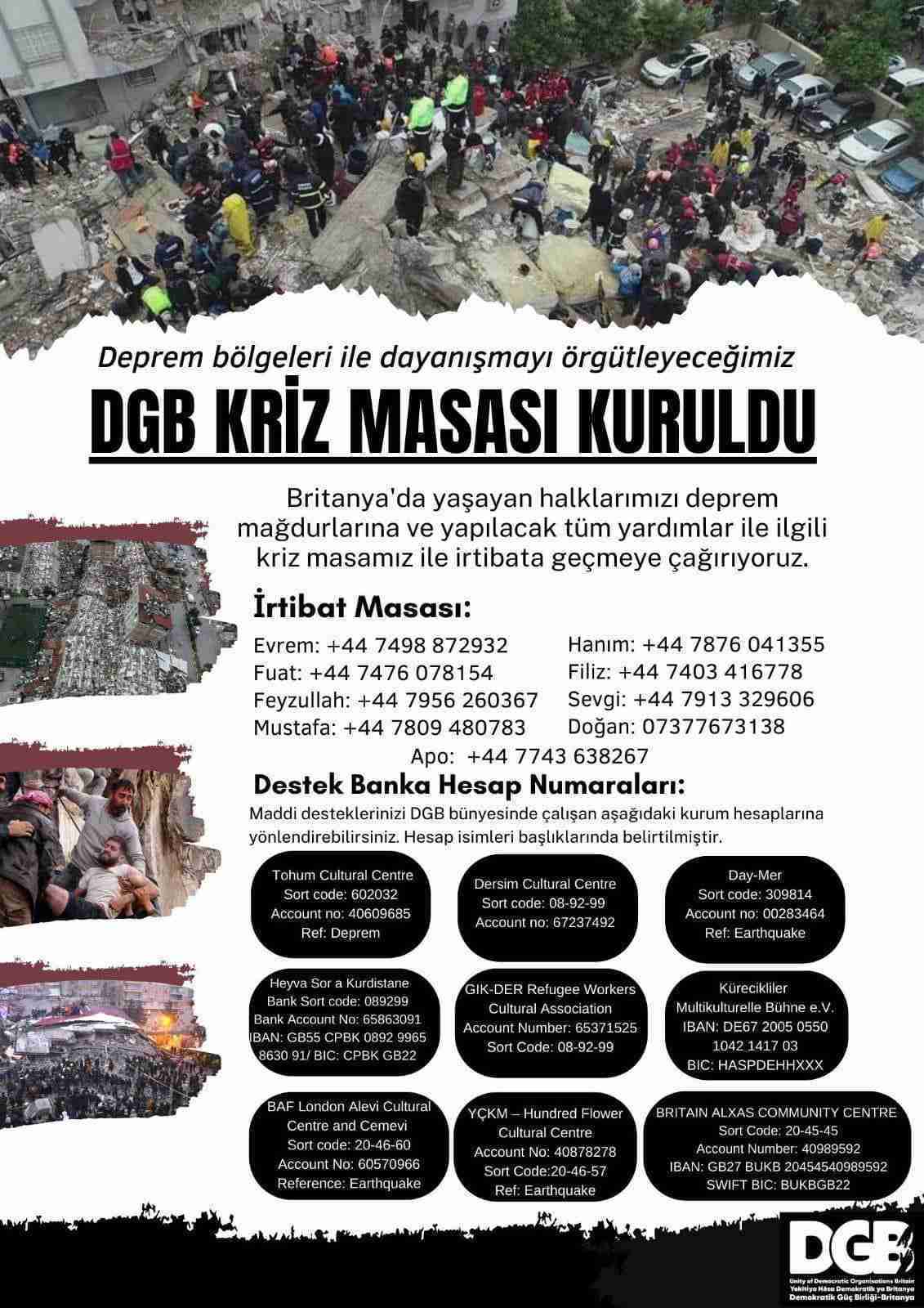 İngiltere, Kahramanmaraş merkezli büyük depremden en çok etkilenen ülkelerin başında geliyor. İngiltere’de yaşayan, Kürt, Türk ve Alevi göçmenlerin, merkez üssü olan Kahramanmaraş başta olmak üzere depremin enkaza dönüştürdüğü tüm il, ilçe, köy ve hatta mezralarda akrabaları, tanıdıkları ve yakınları var. Aradan geçen yaklaşık bir aya rağmen, depremzedelere destek olmak için yardım toplayan tüm dernek ve kurumlarda taziyeler devam ediyor.