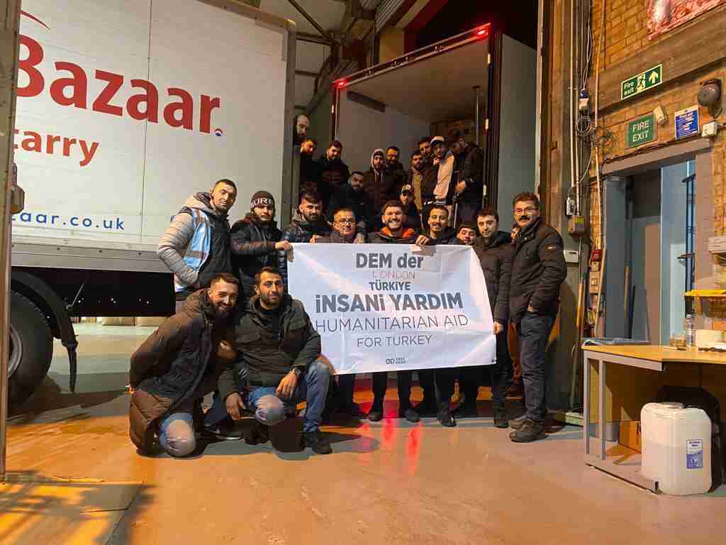 Deprem haberi alınır alınmaz, başta Londra’da olmak üzere ülkenin her yanından halk, bölgeye ulaşabileceğini düşündükleri yerel sivil örgütlere, belediyelere, gönüllü yerel arama kurtarma çevrelerine, cemevlerine, taraftarı oldukları siyasi partilerin yerel örgütlerine başvurarak depremzedelerle dayanışmak için harekete geçti. İngiltere’den yola çıkan gönüllüler ve yardımlar daha AFAD bölgeye varmadan, depremin üstünden 24 saat geçmeden bölgeye vardılar. Tırnaklarıyla enkaz altındaki yakınlarını enkaz altından çıkarmaya çalışan depremzedelere yardıma giriştiler. Daha yola çıkmadan sipariş ettikleri yardımları iktidarın tüm engelleme girişimlerini aşarak depremzedelere yardımları aracısız ulaştırmaya çalıştılar.