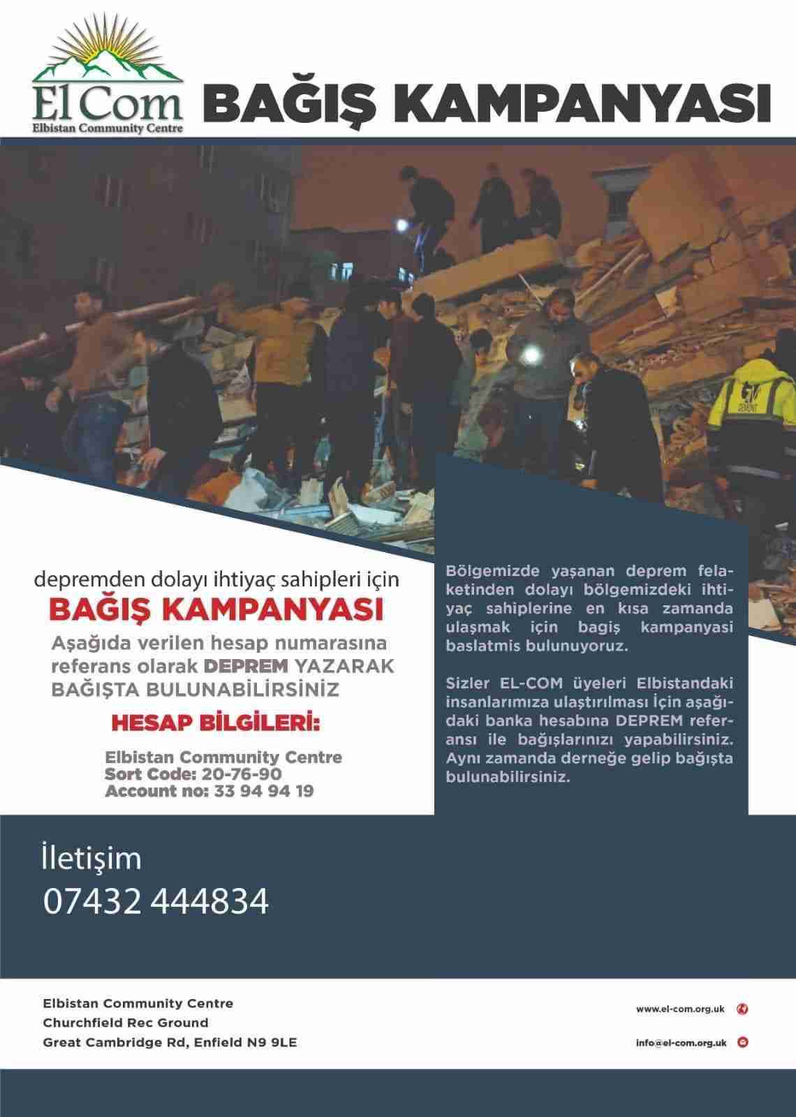 Alxas on iki köyden oluşuyor ve Elbistan’da yaşayan çok sayıda köylülerimiz vardı. Bizim akrabalarımız ve yöre çevremizden 30’un üzerinde kayıp var. Burada biz kampanyayı ilk gün başlattık hemen. İstanbul’daki AK-EL, Kürecik ve Elbistan Derneği ile beraber ortak bir yardım gönderdik. İlk gün biz buradan yirmi bin sterlini dernek hesabından direk gönderdik. Daha sonra da biz buradan Gofundme üzerinden bir kampanya başlattık. Kampanya daha devam ediyor. Bu ayın sonuna kadar bir iki hafta daha devam ettirmeyi düşünüyoruz.