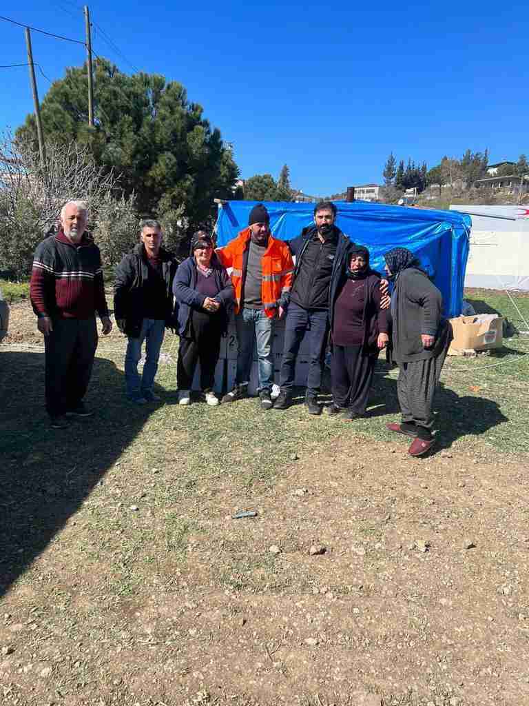Biz depremden bir gün sonra hemen bir yardım kampanyası başlattık. Yardım kampanyası da yaklaşık üç gün sürdü. Üç günün sonunda da kampanya devam etti ve halen de devam ediyor. Biz Tilkiler Toplum Merkezi eş başkanları olarak yardımlardan birazını yanımıza alarak Türkiye’ye gittik. İlk gün Antep’e gittik. Bize gelen telefon ve adresler üzerinden Antep’teki yaşlılarımıza soba ve erzak ulaştırdık. Ondan sonra oradaki köylerimizin fazla bir ihtiyacı olmamasından dolayı biz Pazarcık’a yöneldik.
